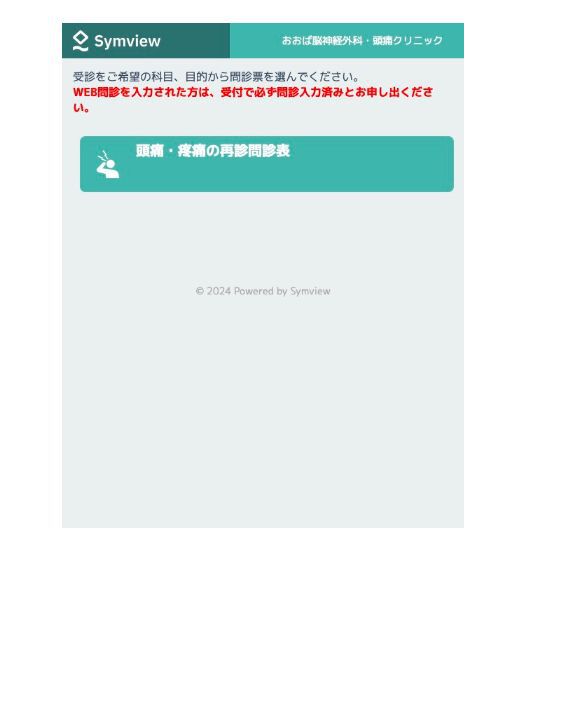 現在、「頭痛問診票」は受付にて問診票をお渡して記載をしていただいておりますが、今後はスマートフォンを使用したWeb問診へ移行してまいります。患者さまのメリットとしては、①来院前より入力が可能、②院内での待ち時間の短縮があげられます。当面、現行の方法も継続しますが、可能な限りスマートフォンからの記載をお願い申し上げます。